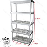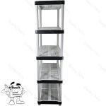 رنگ طوسی : مشخصات محصول تعداد طبقه : 5 طبقه ابعاد: 186 ارتفاع * 41 عرض * 90 طول (سانتی متر) جنس بدنه : پلی پروپیلن وزن محصول: 12.600 کیلوگرم مزایا: کیفیت و طراحی زیبا، دارای بست به دیوار و بست سری شدن، بنا به نیاز می توان تعداد طبقات را کاهش داد
